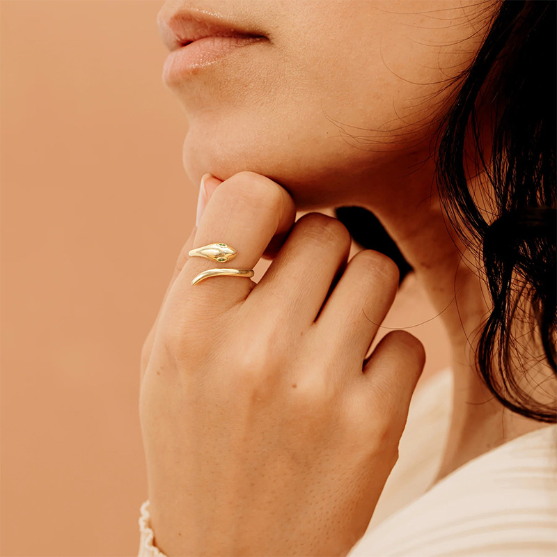 You're viewing: Golden snake-shaped ring, women’s light luxury, exquisite and versatile, high-end, small spirit snake opening ring index ring Original price was: $359.00.Current price is: $268.00.