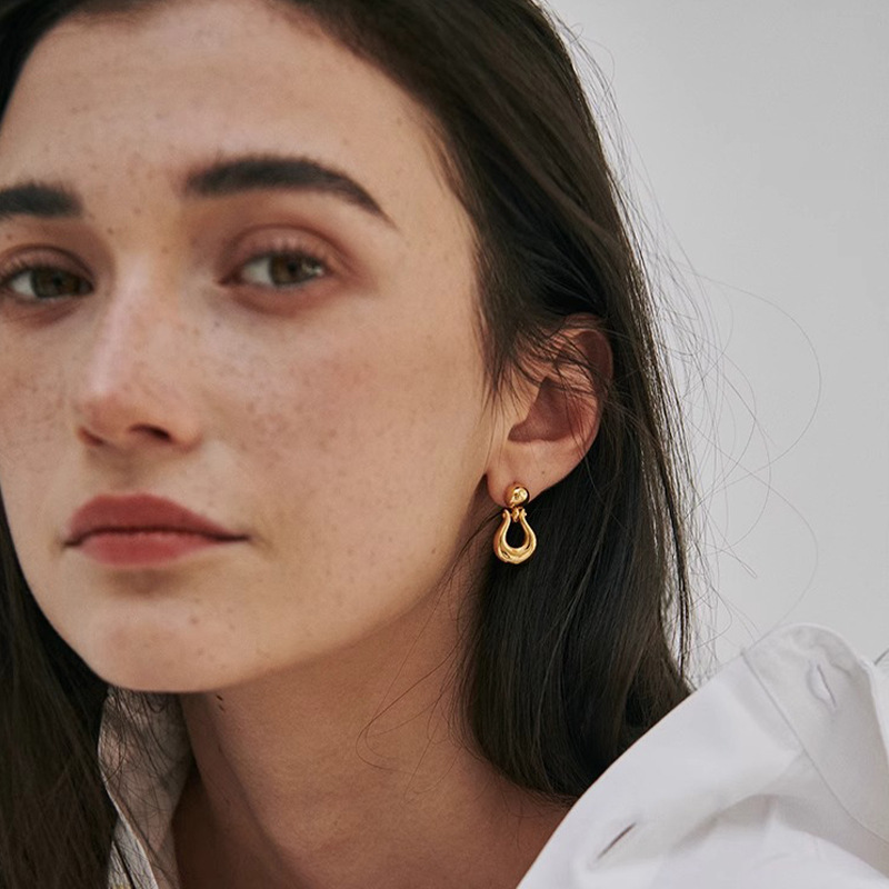 Horseshoe buckle earrings, women’s light luxury high-end design, simple retro temperament, round earrings